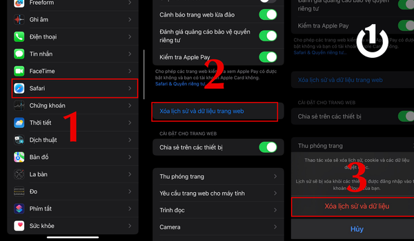 Bước 4: Tiếp tục chọn “Clear History and Data” để xóa tất cả dữ liệu trên Safari.
