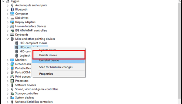 Nhấp chuột phải và chọn Disable device