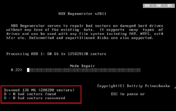 HDD Regenerator là một trong những phần mềm test ổ cứng được nhiều kỹ thuật viên sửa chữa máy tính tin dùng. Điểm đặc biệt của phần mềm này là khả năng can thiệp trực tiếp vào Dos và có thể khắc phục tình trạng đĩa cứng bị "bad" không phải là đĩa cứng chứa hệ điều hành Windows. Công cụ này khá nhỏ gọn và tiện lợi.