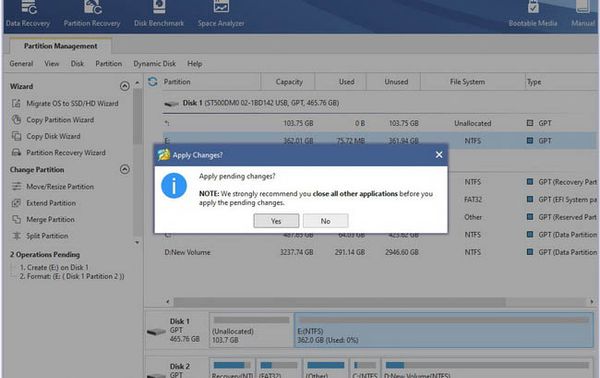 - Bước 5: Xác nhận lại quá trình cắt bad sector bằng cách bấm vào mục YES. Phần mềm sẽ khởi động tiến trình phân vùng lại ổ cứng.