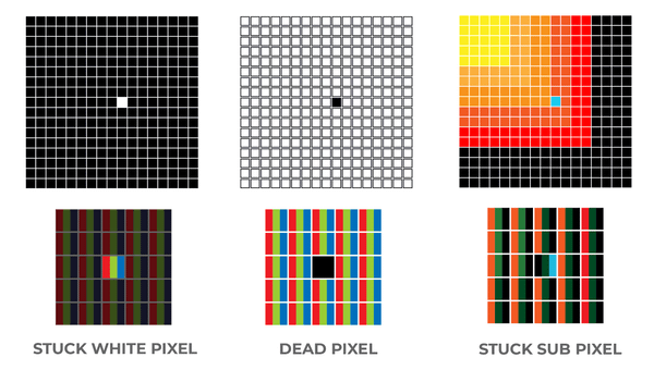 - Dead Subpixel (Điểm chết con): Subpixel là các thành phần nhỏ hơn của pixel, bao gồm các điểm ảnh màu đỏ, xanh lá cây và xanh dương. Khi một hoặc nhiều subpixel không hoạt động, sẽ tạo ra các điểm chết con có màu tương ứng không hiển thị đúng.