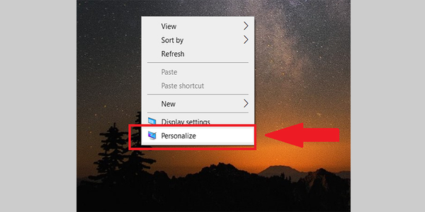 - Bước 2: Nhấp chuột phải vào bất kỳ vị trí trống nào trên màn hình desktop và chọn "Personalize" (Tùy chỉnh).