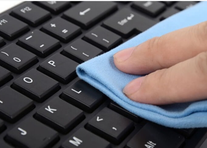 Dùng khăn giấy hoặc vải mềm để lau khô toàn bộ bề mặt bàn phím, màn hình và các khu vực xung quanh nơi nước đã tiếp xúc. Đừng quên lau kỹ các khe phím, cổng kết nối và các khu vực dễ đọng nước.