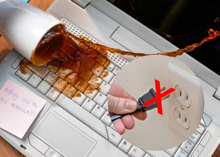 Ngắt toàn bộ thiết bị điện sau khi bị đổ nước lên laptop