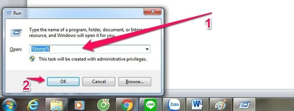 Bạn nhấn đồng thời “Windows + R”, gõ lệnh “%temp%” rồi nhấn OK
