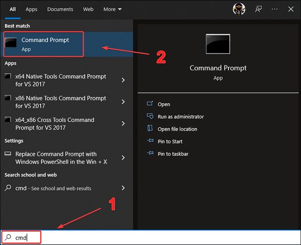 - Bước 1: Bạn cần mở Command Prompt. Để làm điều này, hãy tìm kiếm từ khóa "cmd" trên thanh tìm kiếm của máy tính của bạn.