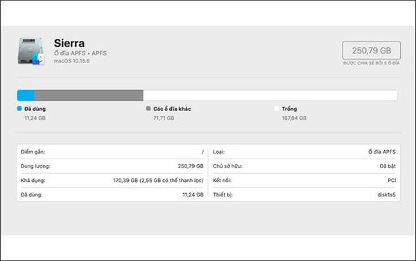 Như vậy, bạn có thể dễ dàng kiểm tra dung lượng ổ cứng trên MacBook thông qua Disk Utility.