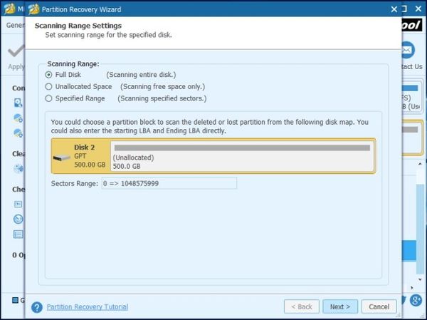 - Bước 3: Bạn cần chọn phạm vi quét bằng cách tích vào nút Full Disk, unallocated Space hoặc Specified Range. Nếu bạn nhấp vào Full Disk, phần mềm sẽ quét toàn bộ ổ cứng.