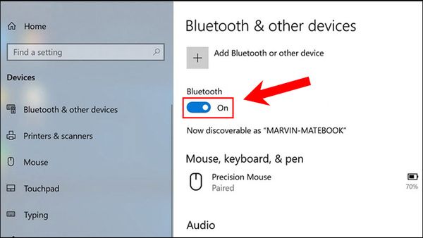 Vào Devices > Chọn Bluetooth & other devices > Bật Bluetooth