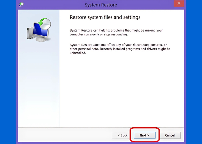 Bước 4: Vẫn ở tab “System Restore”, hãy nhấn “Next”.