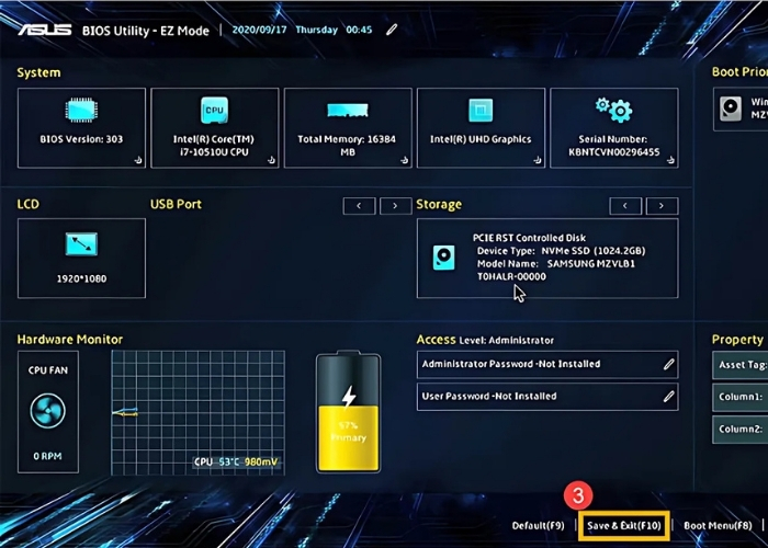 Bước 3: Nhấn “F10” để lưu lại rồi thoát khỏi thiết lập.