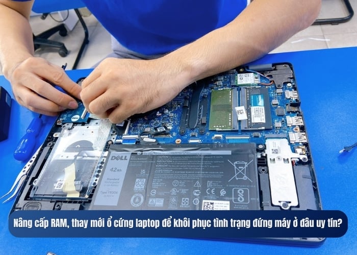Để cải thiện tình trạng laptop bị đứng thường xuyên, bạn có thể nâng cấp RAM để máy xử lý thông tin mượt hơn, đặc biệt là khi chạy nhiều ứng dụng cùng lúc. Bên cạnh đó, thay ổ cứng SSD hoặc HDD cũng là một giải pháp hiệu quả, giúp tăng tốc độ khởi động của máy và truy xuất dữ liệu.