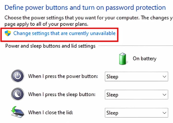Ở một số trường hợp, việc bật Fast Startup cũng là nguyên nhân khiến laptop đang dùng bị sập nguồn đột ngột. Vì vậy, bạn cần phải kiểm tra lại trình Fast Startup và tắt đi theo các bước như sau: