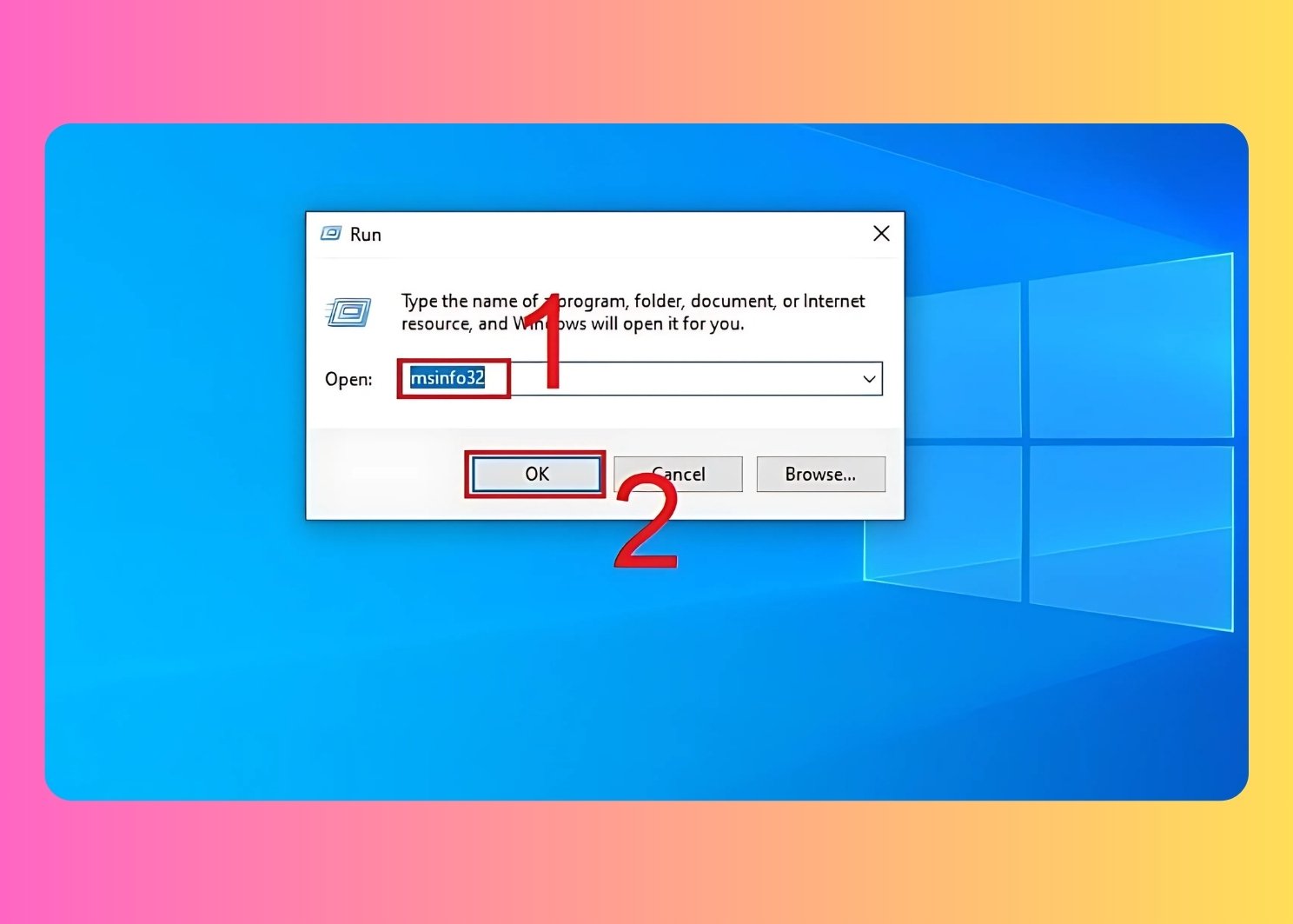 Nhập lệnh msinfo32 và nhấn chọn “OK”