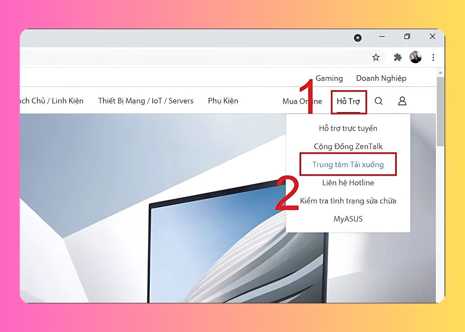 Bước 3: Tiếp theo, đi tới trang chính thức của nhà sản xuất máy tính, rồi tìm đến phần “Hỗ trợ” và chọn mục “Trung tâm tải về”.
