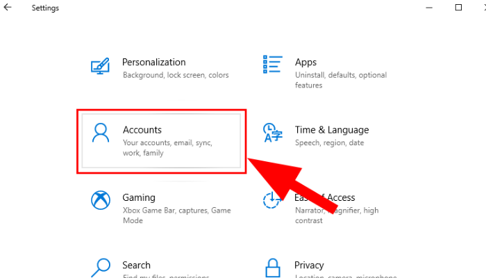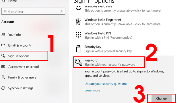 Bước 2: Chọn Accounts (Tài khoản), chọn Sign-in options (Tùy chọn đăng nhập).