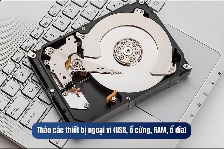Tháo các thiết bị ngoại vi (USB, ổ cứng, RAM, ổ đĩa)