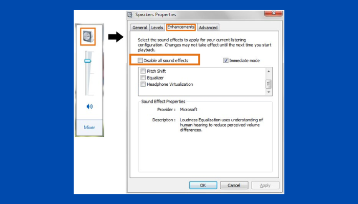 Tắt hiệu ứng âm thanh laptop tránh bị rè, méo tiếng