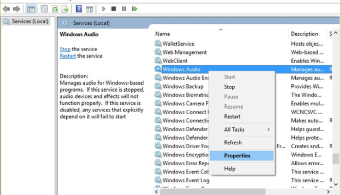 - Dịch vụ Windows Audio bị dừng hoặc hoạt động không ổn định.