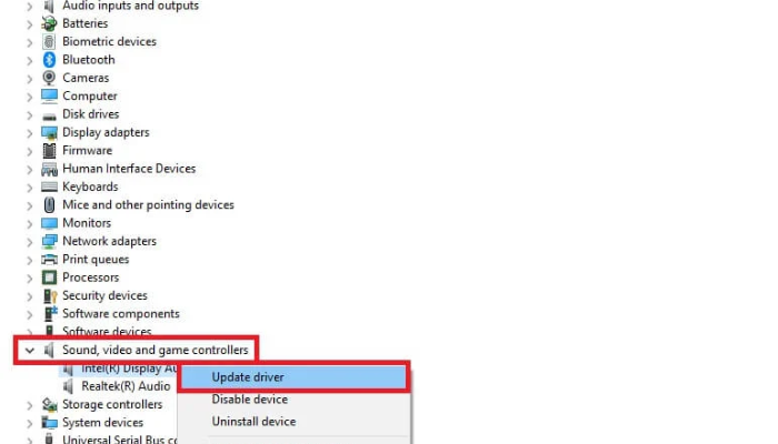 Bước 3: Nhấp chuột phải vào Realtek High Definition Audio (hoặc driver âm thanh đang sử dụng).