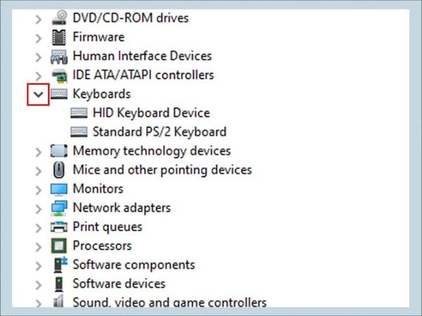 Bước 2: Trong danh sách, tìm đến mục "Keyboards", nhấn vào mũi tên để mở rộng.