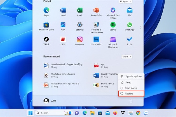 Bước 2: Di chuyển chuột chọn “Restart”. Máy tính sẽ tự động khởi động lại giúp giải quyết các lỗi phần mềm tạm thời.