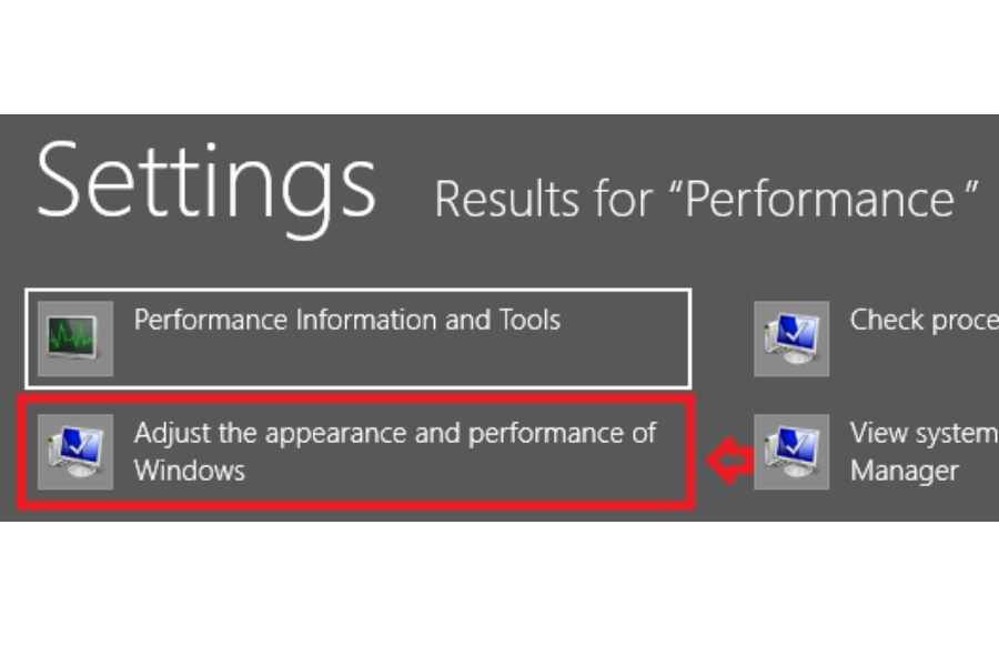 Tìm kiếm và chọn Adjust the appearance and performance of Windows