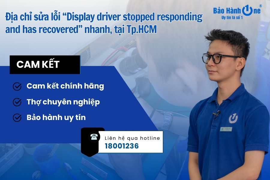 Bảo Hành One đã chia sẻ chi tiết những phương pháp hiệu quả nhất để khắc phục lỗi Display driver stopped responding and has recovered ngay tại nhà. Tuy nhiên, nếu lỗi liên quan đến phần cứng, việc tự tháo máy có thể gây rủi ro và làm tình trạng trở nên nghiêm trọng hơn. Vì vậy, bạn nên tìm đến các trung tâm sửa chữa uy tín để được hỗ trợ chuyên nghiệp.