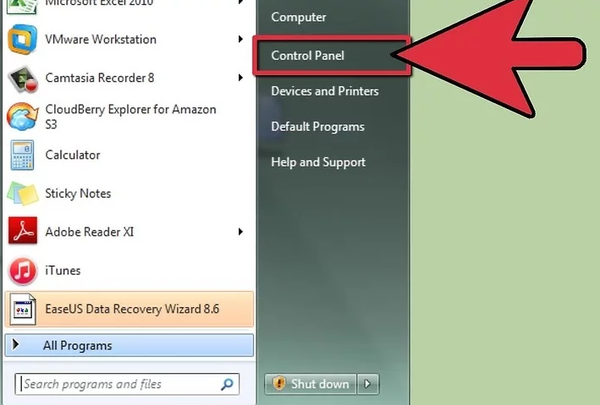 - Bước 1: Bắt đầu bằng cách nhấn nút Start và chọn Control Panel từ menu xuất hiện.