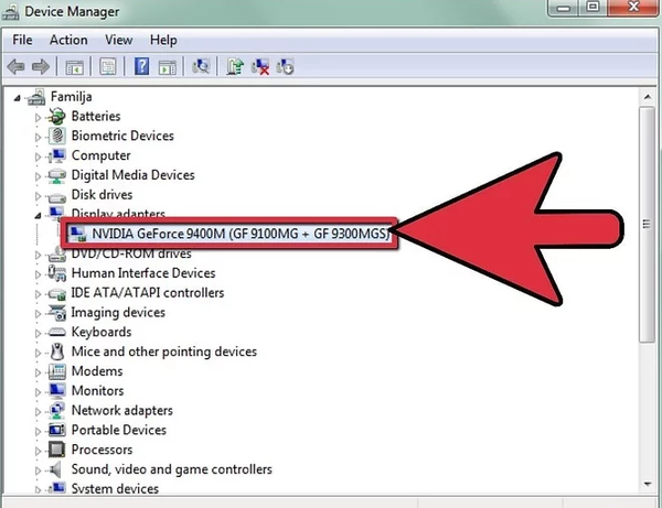 Đầu tiên, hãy ghi lại tên card màn hình được hiển thị dưới mục "Display adapters" trong "Device Manager".
