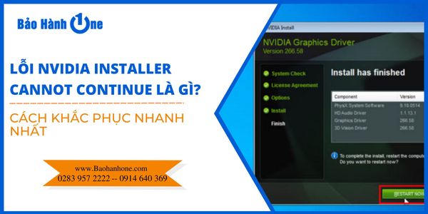 Khi sử dụng laptop, xuất hiện lỗi “NVIDIA Installer Cannot Continue” và bạn không biết đây là tình trạng lỗi gì? Vậy nguyên nhân xuất hiện lỗi này là gì? Có cách nào khắc phục nhanh nhất không? Bài viết này, Bảo Hành One sẽ giải đáp tất tần tật thắc mắc về lỗi “NVIDIA Installer Cannot Continue” và cách khắc phục nhanh nhất nhé!