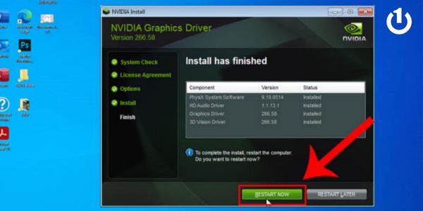 Bước 5: Sau khi quá trình cài đặt hoàn thành, bạn cần khởi động lại máy tính và đã thành công sửa lỗi “NVIDIA Installer Cannot Continue”