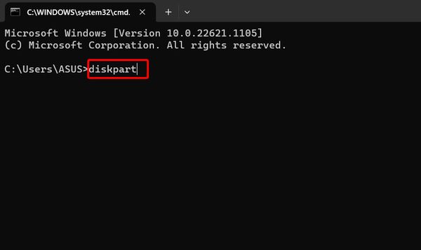 - Bước 3: Ở cửa sổ Command Prompt, nhập "diskpart" để truy cập vào công cụ.