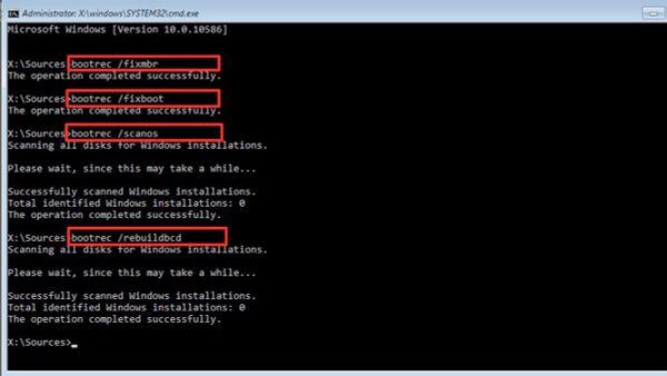 6. Bootrec.exe /rebuildbcd