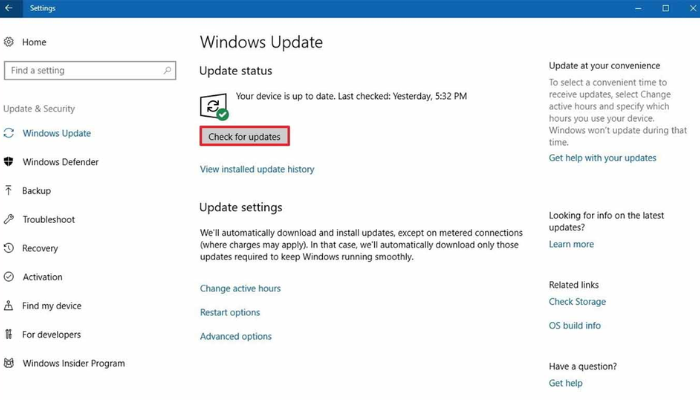 Bước 3: Nhấn Check for updates để tìm bản cập nhật mới nhất.