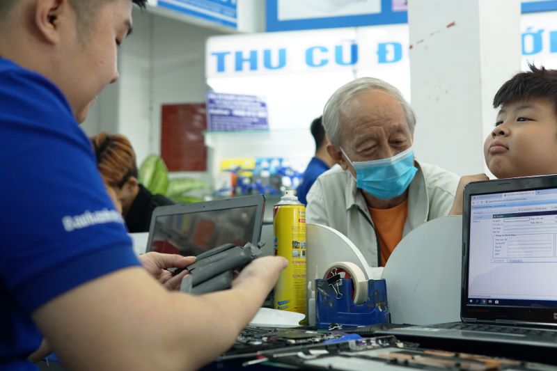 Bảo Hành One hỗ trợ dịch vụ vệ sinh laptop miễn phí bằng các dụng cụ chuyên dụng, kỹ thuật viên sẽ sử dụng bình khí nén hoặc cọ mềm để thổi bụi từ khe tản nhiệt và quạt cùng các bộ phận liên quan, quá trình thực hiện nhanh chóng mà giúp laptop khắc phục lỗi sập nguồn hiệu quả.