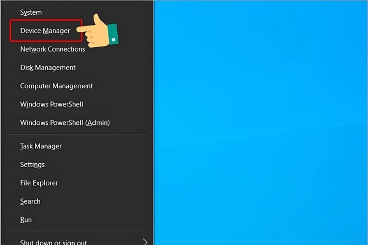 Bước 1: Nhấp chuột phải vào “Start” hoặc nhấn tổ hợp phím “Windows + X” rồi chọn “Device Manager”.