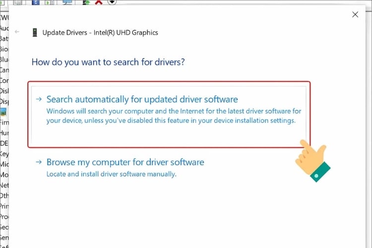 Bước 3: Chọn tiếp mục “Search Automatically for update drivers software” rồi chờ quá trình này cập nhật thành công là hoàn thành.