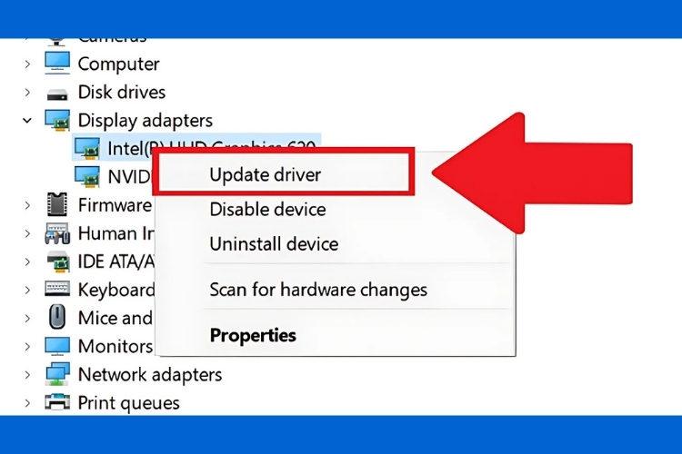 Để xử lý lỗi màn hình laptop bị sọc dọc màu trắng, đầu tiên, hãy thử cập nhật lại driver màn hình theo các bước sau đây: