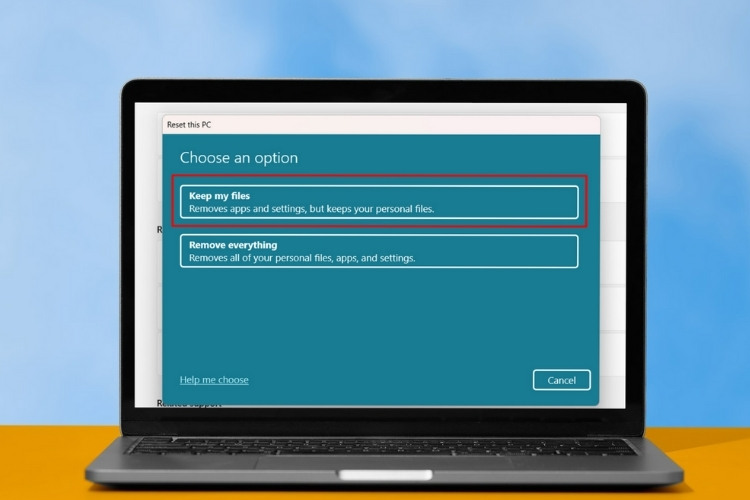 Chọn Keep my files để giữ lại các tập tin cá nhân trong quá trình reset