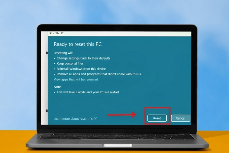 Bước 6: Cuối cùng, nhấn Reset để hệ thống bắt đầu quá trình cài đặt lại.