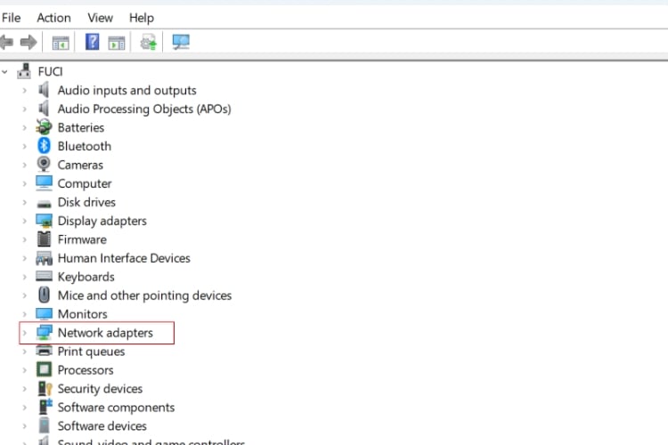 Bước 2: Tìm mục "Network adapters" và tìm card mạng của bạn (Wi-Fi hoặc Ethernet).