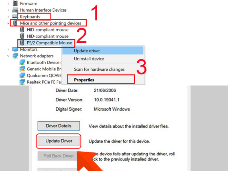 Bước 3: Nhấn chuột phải vào Standard PS/2 Keyboard hoặc bất kỳ mục nào liên quan đến bàn phím và chọn Update driver.