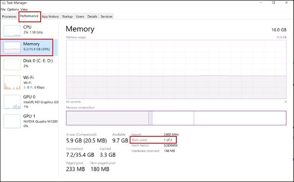 Ngoài ra, bạn cũng có thể kiểm tra xem máy tính hỗ trợ bao nhiêu khe RAM bằng cách xem mục "Slots used". Ví dụ, nếu hiển thị "1 of 2", điều này cho biết máy tính của bạn chỉ sử dụng 1 khe RAM và bạn có thể gắn thêm 1 khe RAM nữa. Tuy nhiên, nếu hiển thị "1 of 1", điều này có nghĩa là máy tính chỉ có 1 khe RAM và bạn không thể gắn thêm RAM.