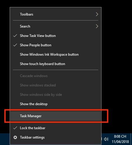 Bước 1: Nhấp chuột phải vào thanh Taskbar và chọn "Task Manager".
