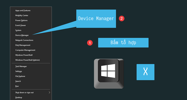 Bước 1: Nhấn tổ hợp phím "Win + X" trên bàn phím để mở menu người dùng.