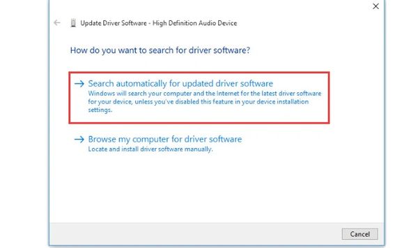 Bước 5: Chọn "Search automatically for updated driver software" để cho phép Windows tìm kiếm và cài đặt trình điều khiển mới nhất cho thiết bị.