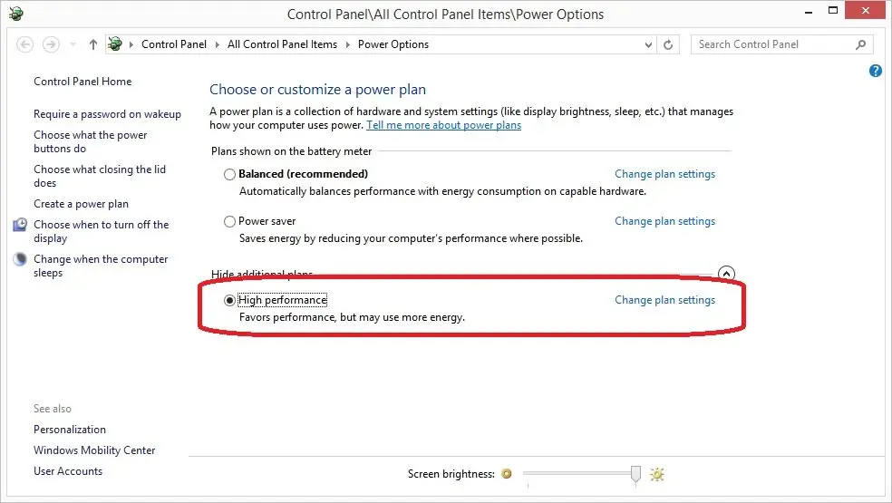 - Bước 2. Chọn chế độ "High performance" (Hiệu năng cao) để tăng hiệu năng hoạt động của máy tính, giúp giảm bớt tiêu thụ RAM bất thường.