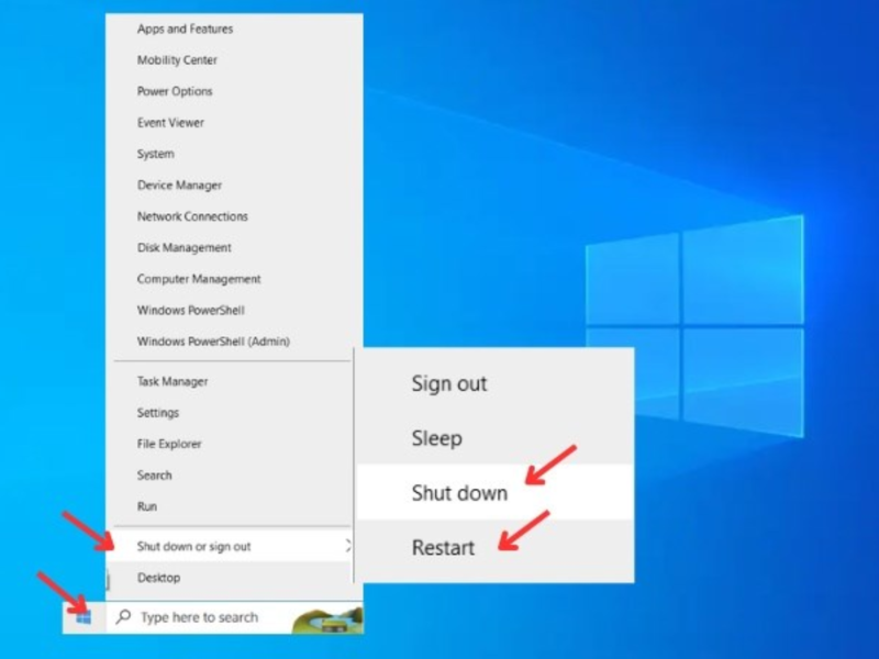 Bước 1: Tắt máy tính và khởi động lại.