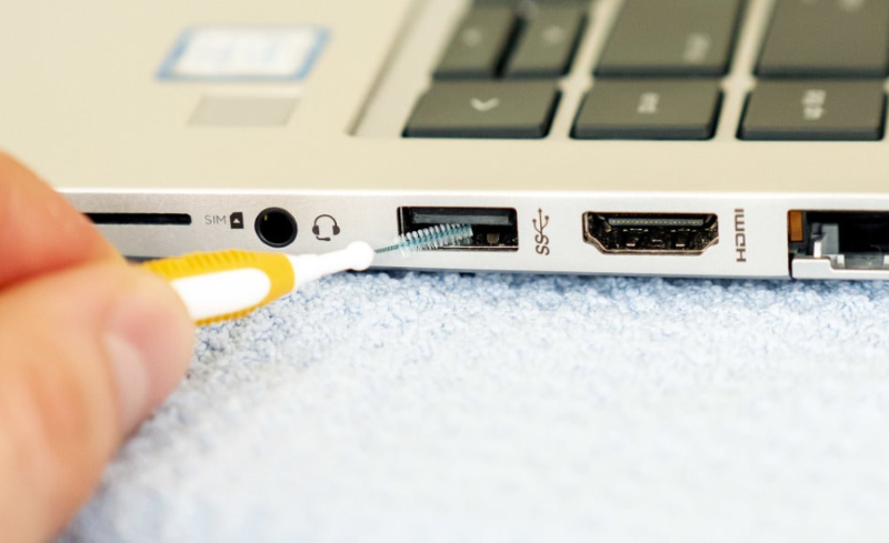 Kiểm tra cổng USB trên laptop xem có bị bẩn hoặc bị hỏng không, nếu cổng bị bẩn, sử dụng một chiếc tăm bông hoặc khăn mềm để làm sạch cổng USB, hoặc kiểm tra xem USB có còn dùng được không bằng cách test trên một máy khác khi đó bạn có thể sửa lỗi laptop không nhận USB.